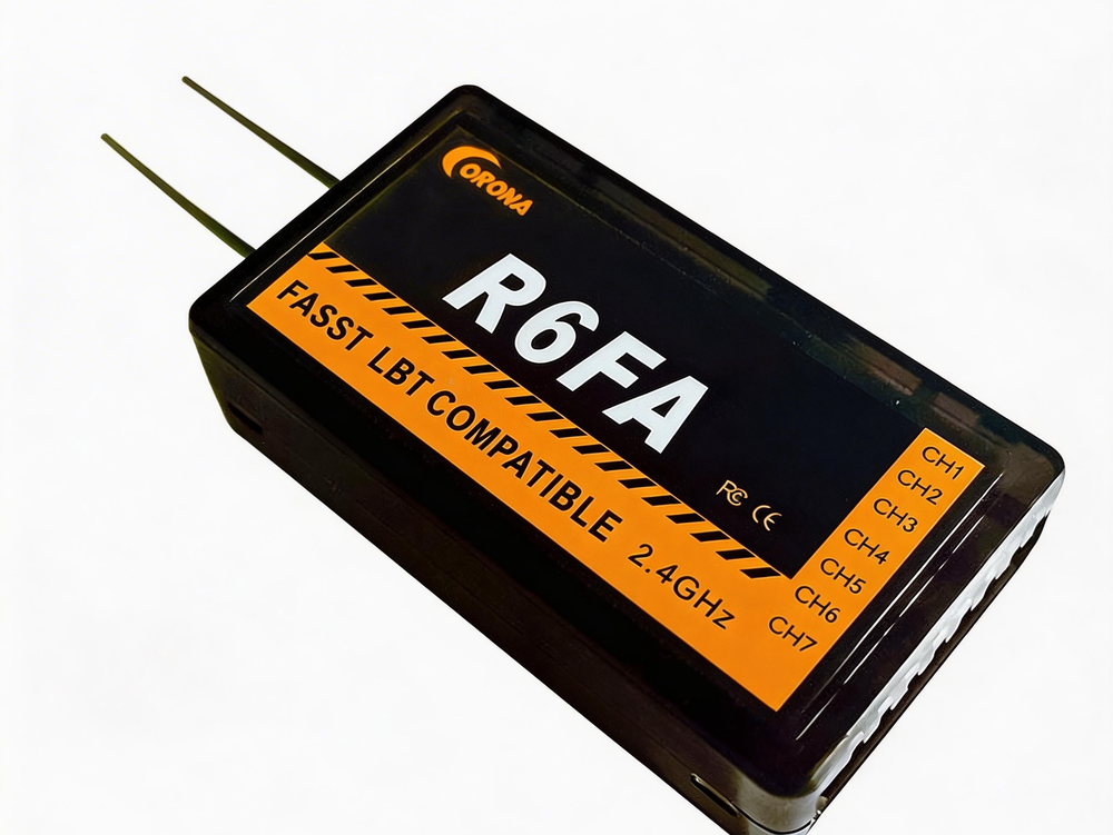 CORONA 2.4GHzスペクトラム拡散FASST対応レシーバーは、FUTABA FASST 2.4GHz送信機(3PM、3PKS、3VCS、3GR、4PK(S)、TM7、TM8、TM10、TM14、T6EX-2.4G、7C-2.4G、8FG、10CG、12FGなど)で使用できるように設計されています。