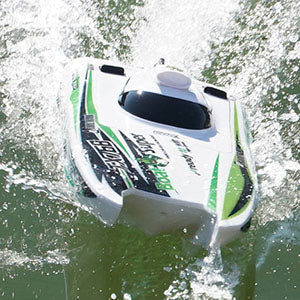 ターボ噴射推進で最高30km/hを誇る高性能ラジコンボートです。ブラシレスモーターと水冷システムによりパワフルかつ安定した走行を実現し、二重防水と耐衝撃ボディでアウトドアでも安心して遊べます。